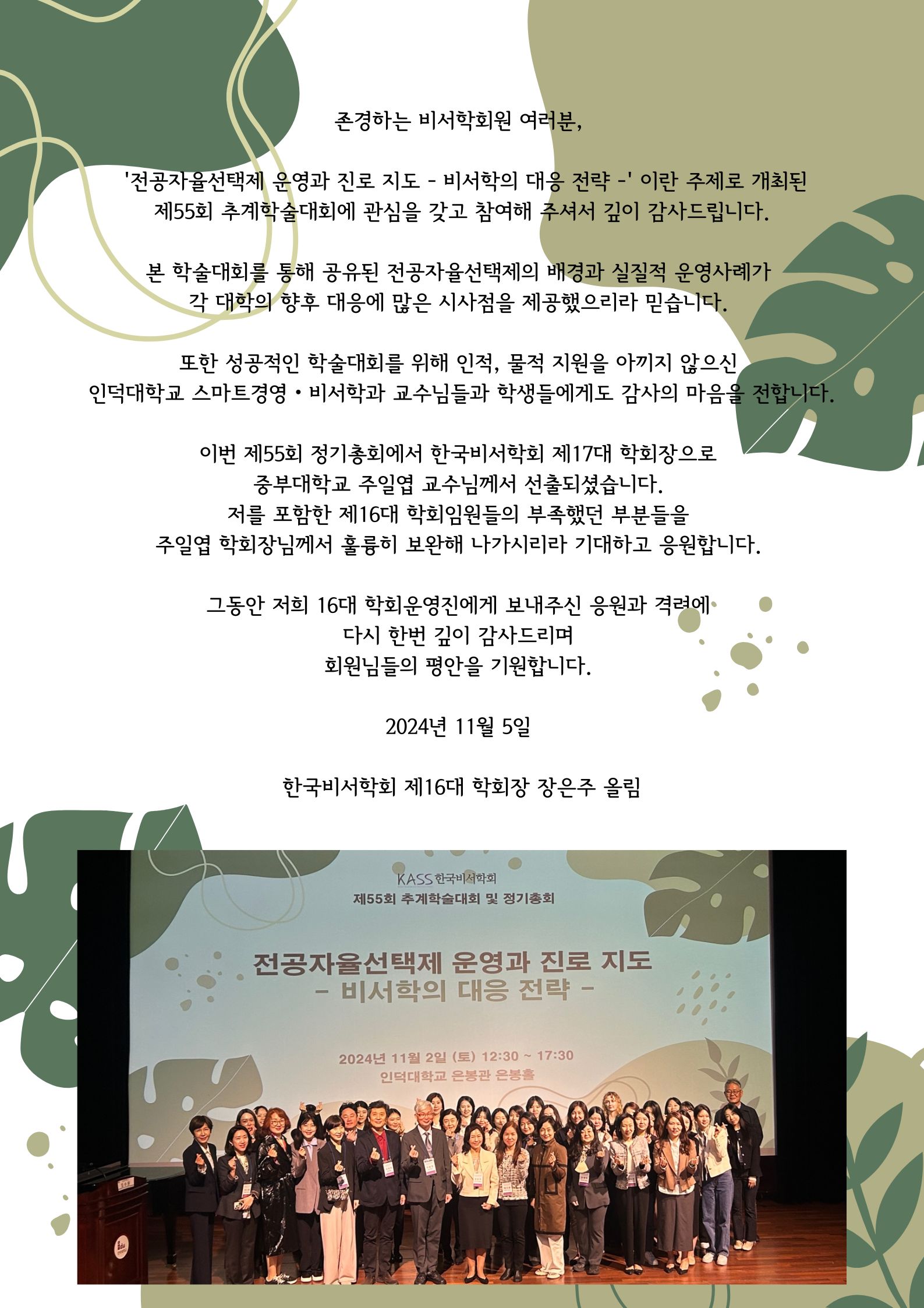 제55회 추계학술대회에 참석해 주셔서 감사드립니다.