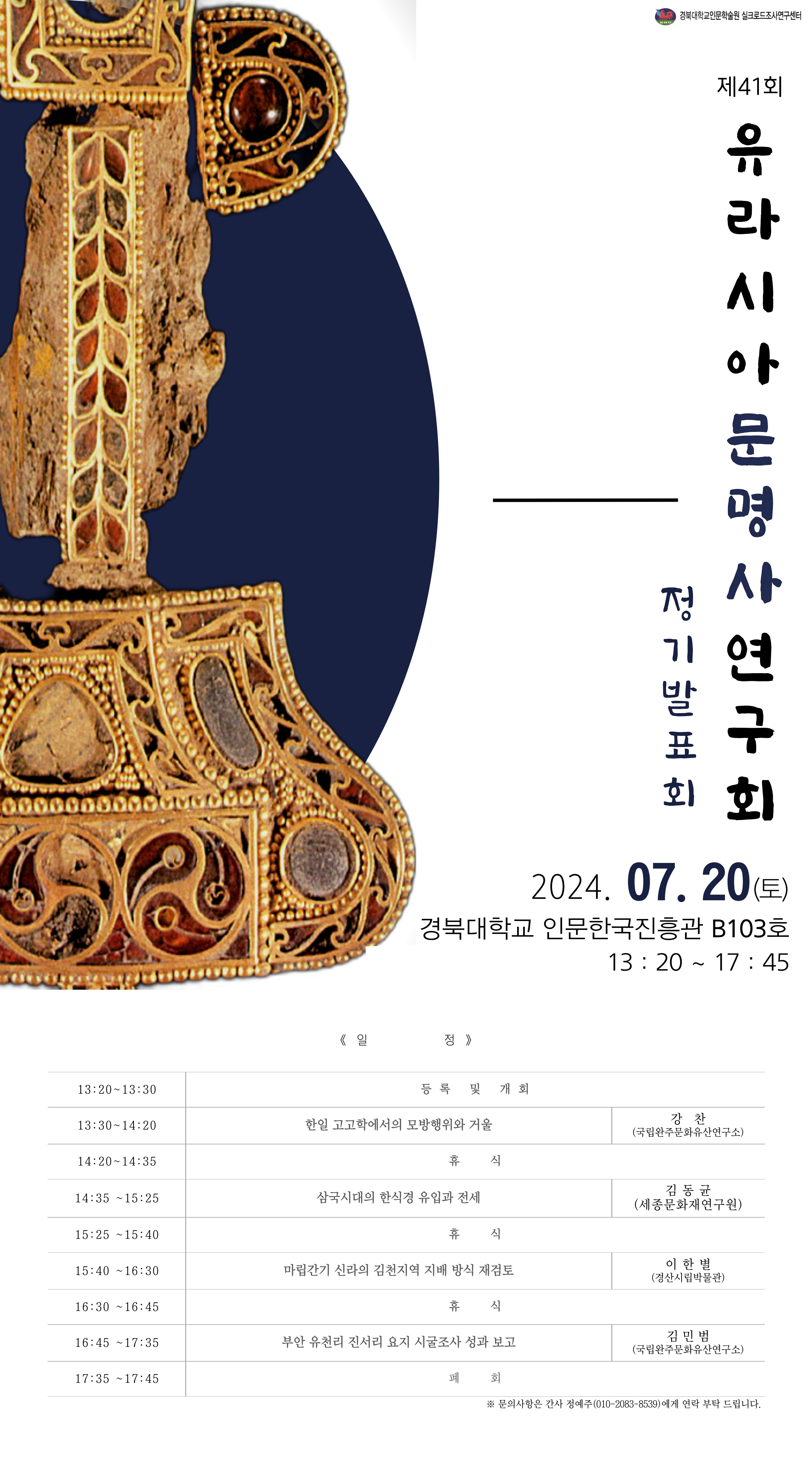 2024년 7월 20일 토요일, 유라시아문명사연구회 제 41회 정기발표회가 진행될 예정입니다.