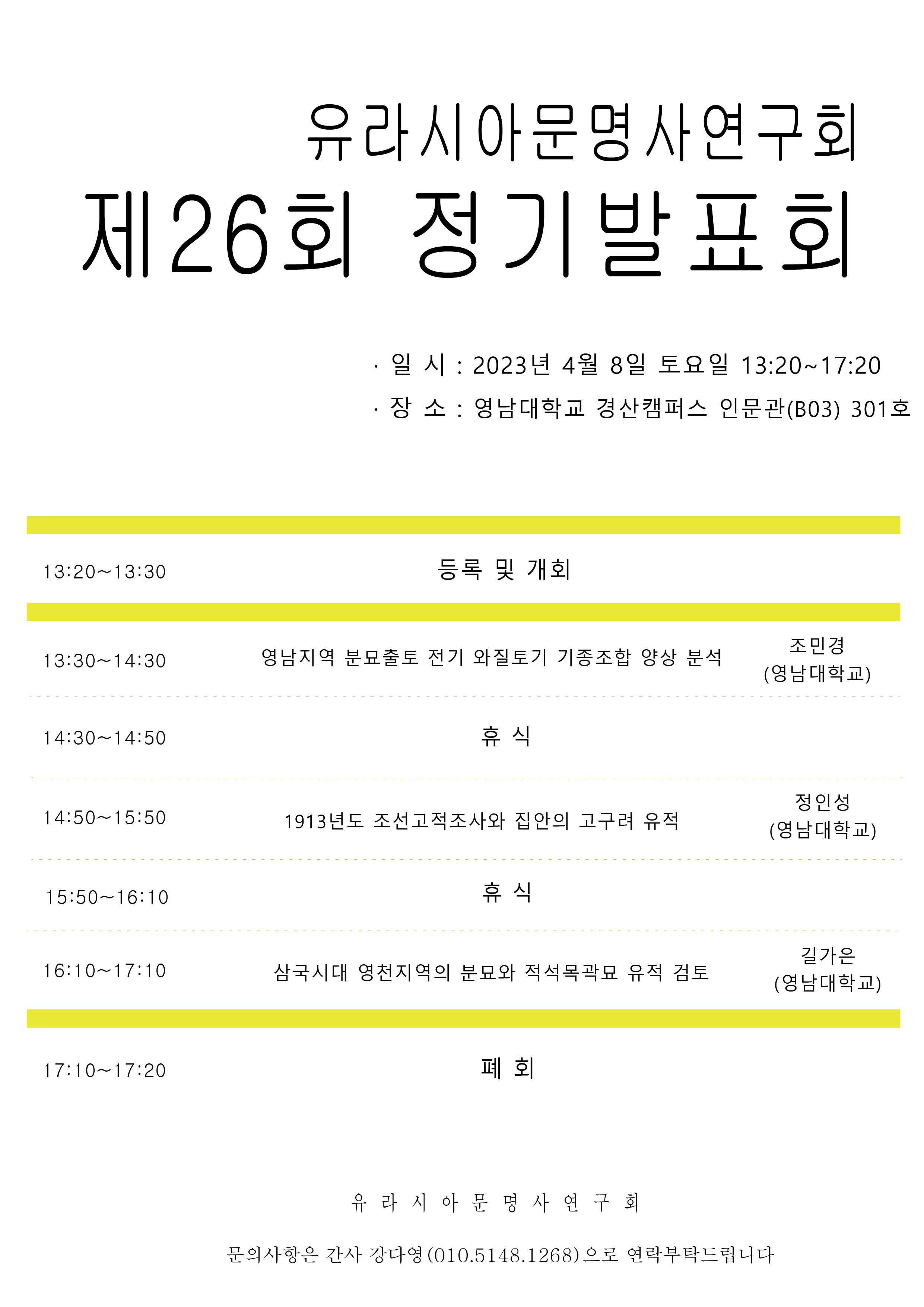 2023년 4월 8일 토요일, 유라시아문명사연구회 제26회 정기발표회가 진행될 예정입니다.