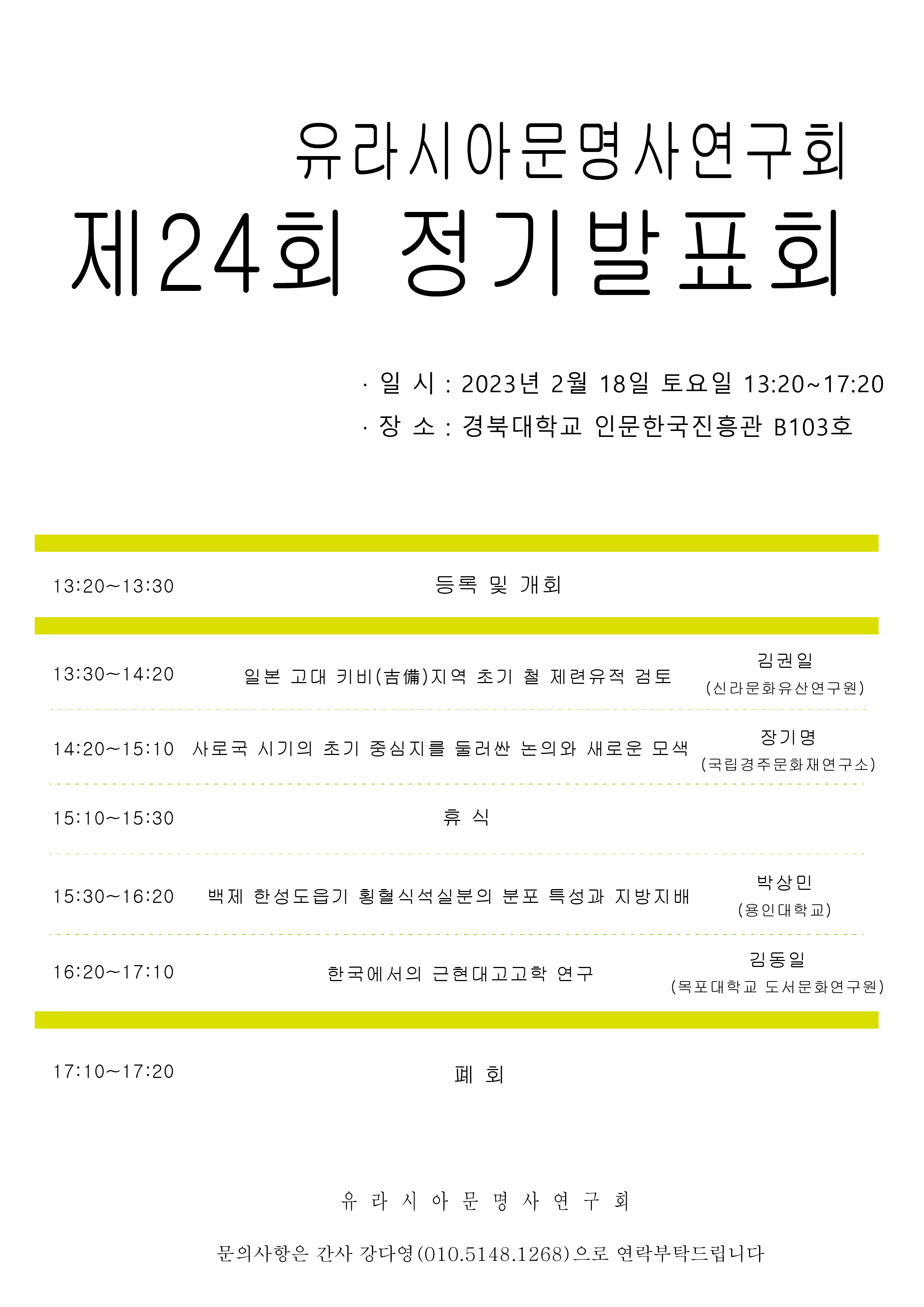유라시아문명사연구회 제24회 정기발표회 안내