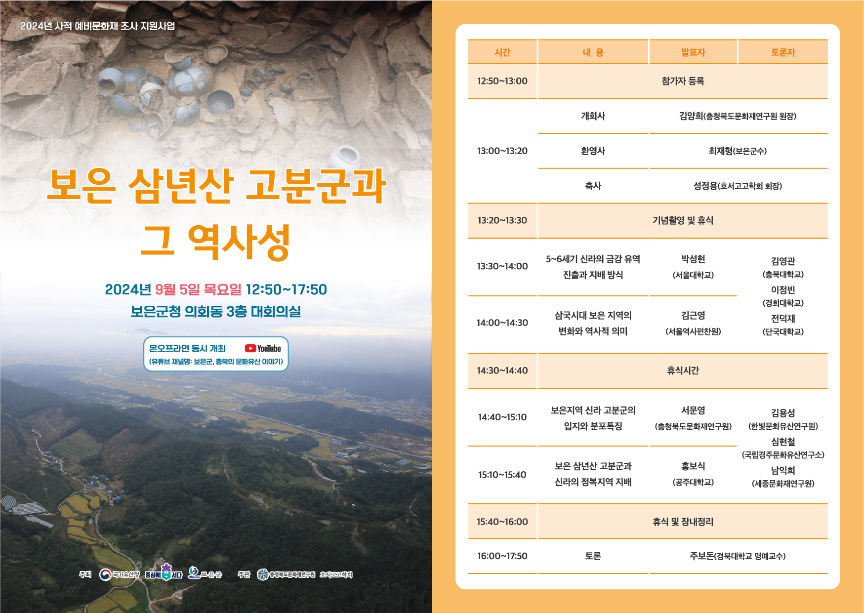 [호서고고학회] "보은 삼년산 고분군과 그 역사성" 학술대회 개최 안내