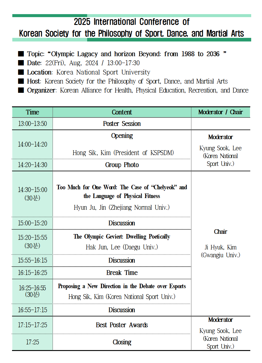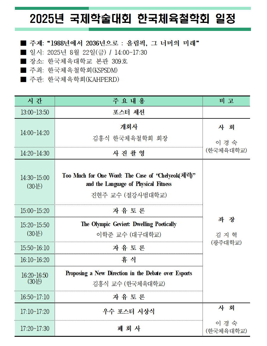 [2025년 36회 88서울올림픽 국제학술대회 및 한국체육철학회 하계학술대회]