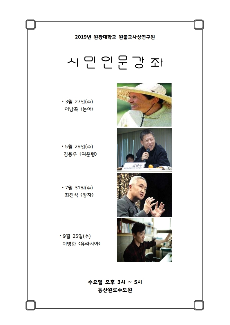 원불교사상연구원 <시민인문강좌> 안내